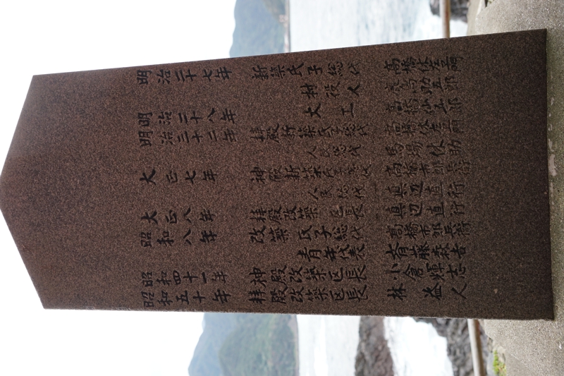・これまでに神社は何度か再建された。昭和29年の台風で倒壊した拝殿を再興した。(昭和41年神殿改築、昭和50年拝殿改築)